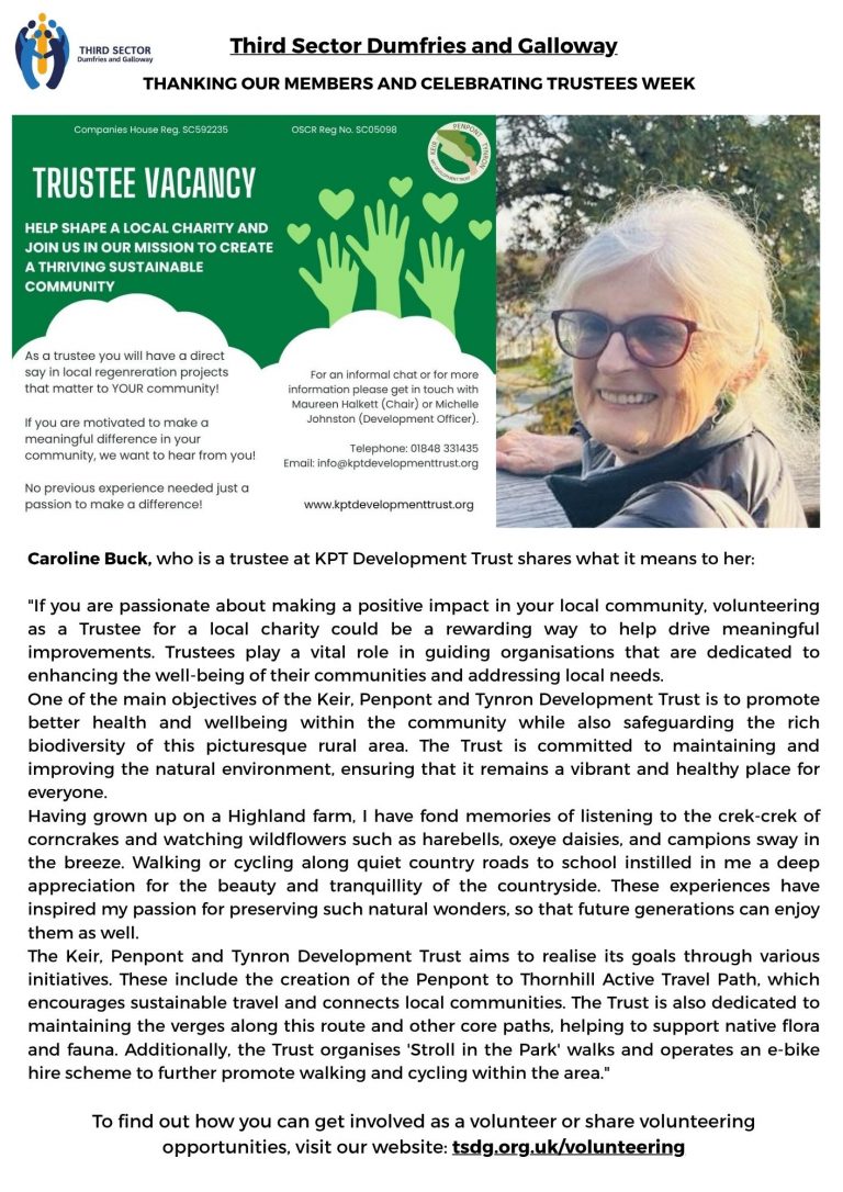 I am Secretary to The Joseph Thomson Group and a member of the Penpont Community Council as I think it is important to be involved in the local community.